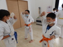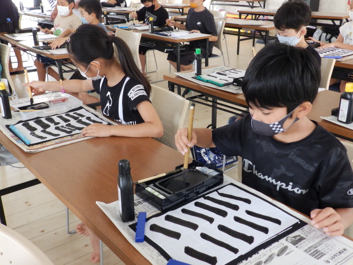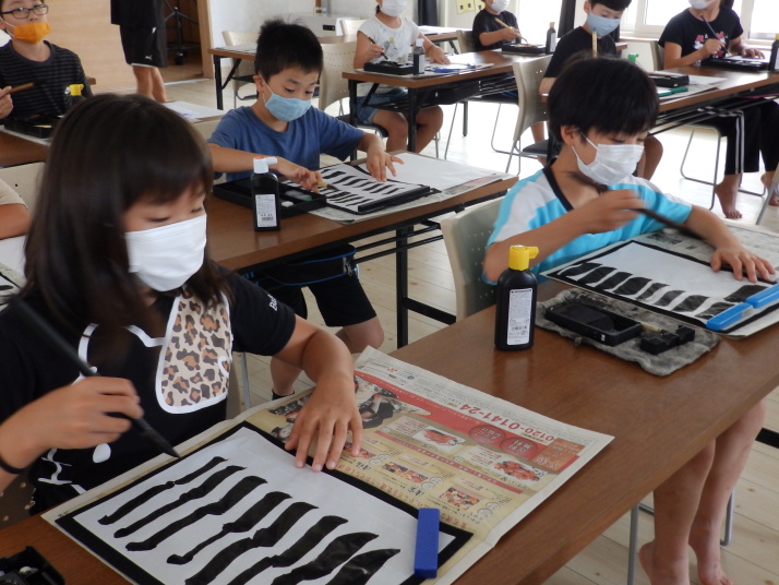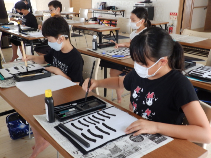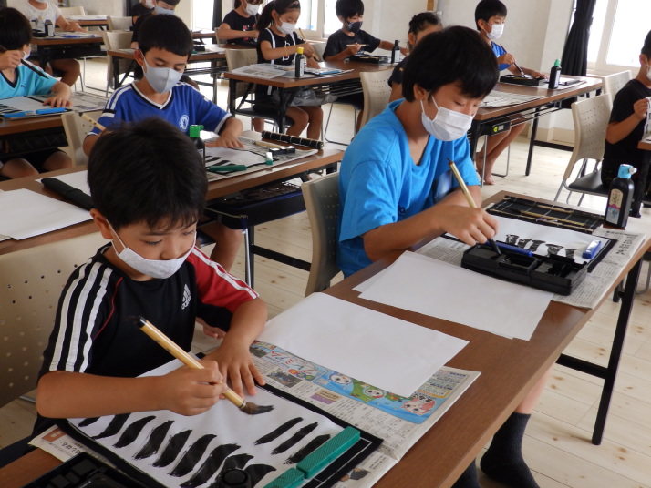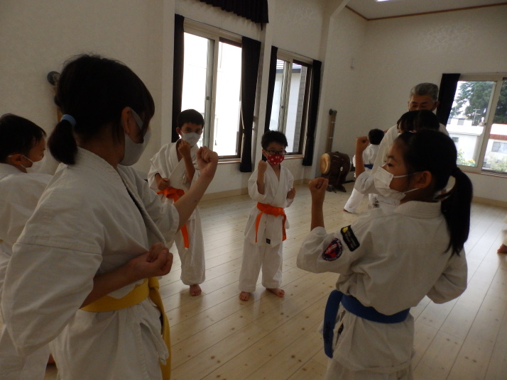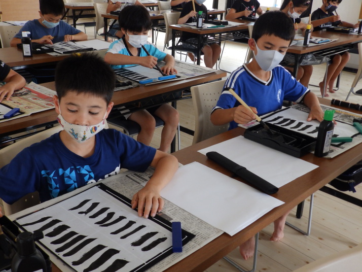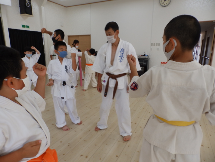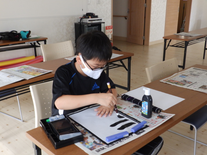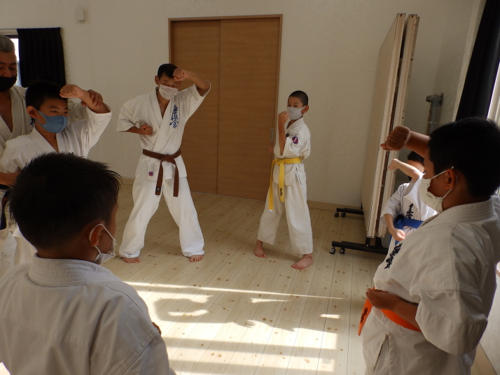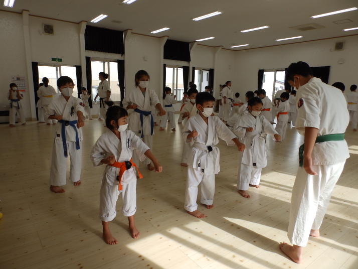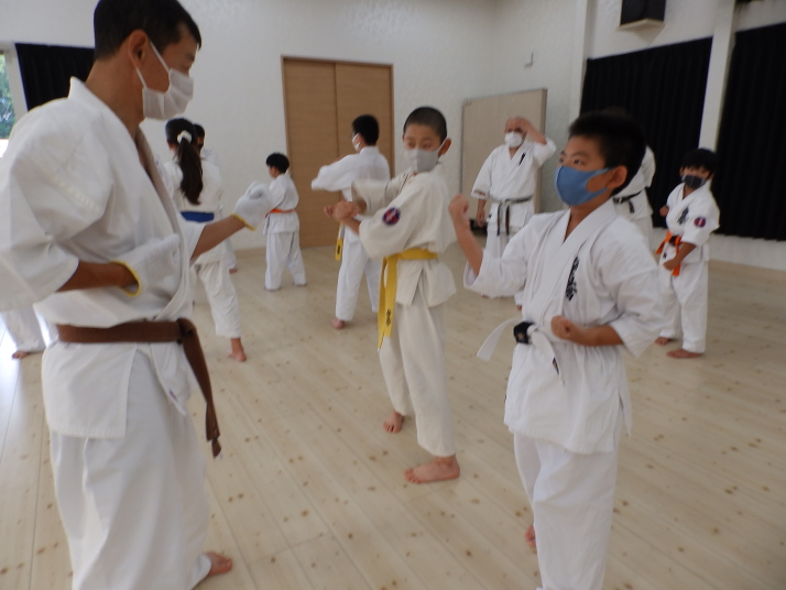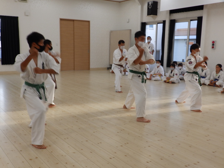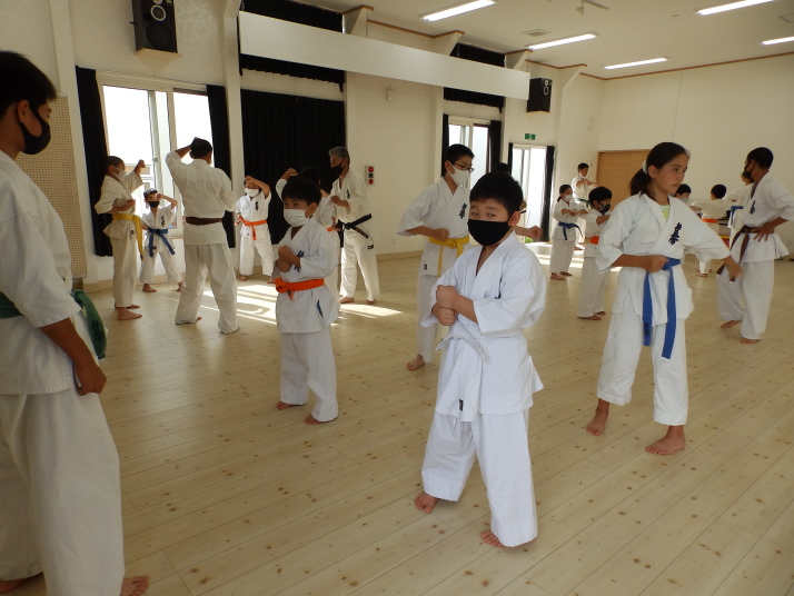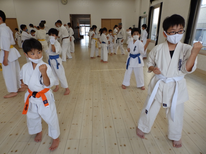 夏の合同稽古(一日目) 一日目は書道と空手の稽古です 今年は新型コロナの感染予防で手指の消毒 隣の人とは間隔をあけて そして、みんなマスクを着用しながらの一日でした。いろんな行事が中止 になる中、対策をしっかりとって無事に終了 明日も頑張りましょう!
