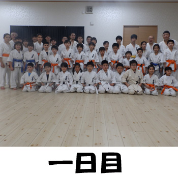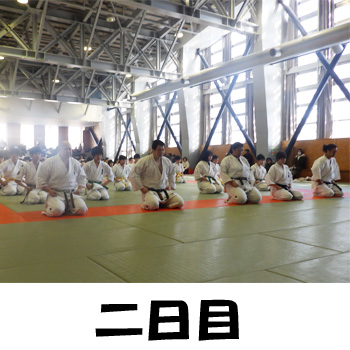| 二日目はスポーツ会館で朝から夕方まで通しの稽古です。中には、初めての |